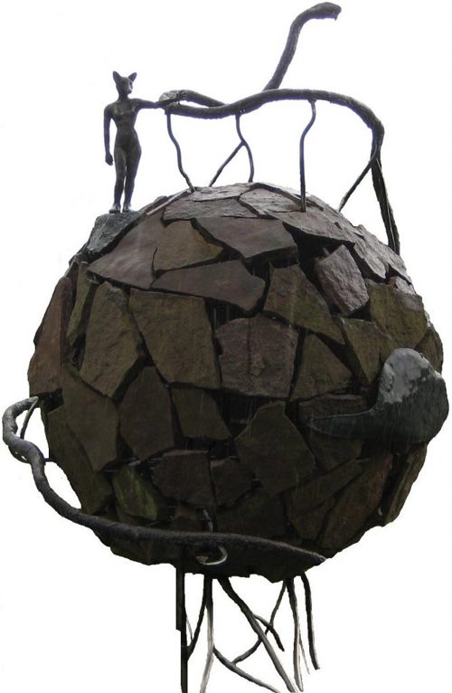 Jens Galschiøt Christophersen har bygget hver lille planet omkring en større planet. Hver beboer er også skildret, og en 7 meter lang slange har Fuglebjergskoles 10. klasses elever været med til at forme hjemme hos kunstneren i Odense på Fyn.